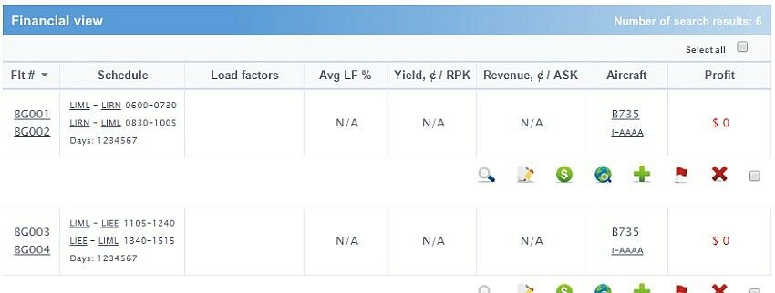 If you navigated to this page right away, you would have noticed that it does not still show any profit figures since the aircraft have not flown yet; like in the picture below. The profit figures will appear soon after your start...
