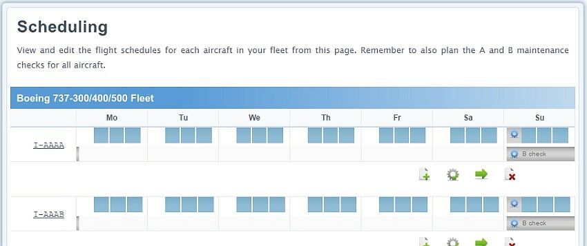 Looking at the Scheduling page (navigation: Routes -> Scheduling) you will see the list of aircraft we are already familiar with from previous pages.