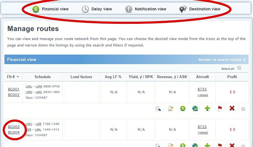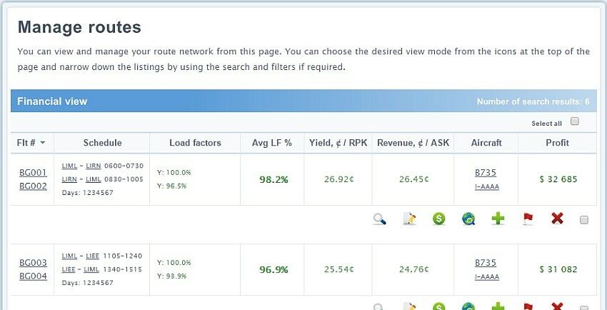 This is a similar overview page like the previously looked My Aircraft page, but on routes instead. It also has different sub-areas and similar set of filters to narrow down the results if you need to look something in particular.