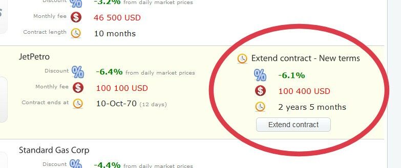 Each supplier company offers individual contract terms that change and update on certain intervals. All of the terms and details are visible on the Fuel Management page where you have a 'tab' for each of your base airports with all the fuel suppliers visible. The fuel suppliers will grant you a discount on the daily market prices of aircraft fuel but will take a fixed amount as a contract fee if you sign a contract with them.
