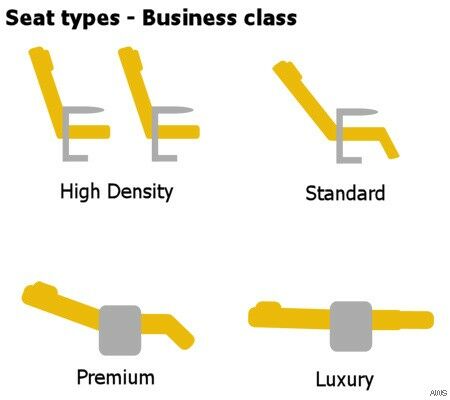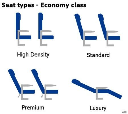 The actual type and cost of the seat varies according to the travel class. Also, a high density economy class (Y) seat is not the same as a high density business class (C) seat. Please read the descriptions at the configuration menu to learn the differences between each seat type. For example, you can consider a high density economy class seating similar to what you may find on small turboprops, and standard seating similar to narrowbody jet seating and premium seats may resemble economy seating on larger aircraft.
